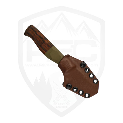 These fixed blades remain the backbone of Auxiliary Manufacturing's operation and the standard by which all other products are measured. Each knife begins as raw American steel and transforms through hours of meticulous handwork - from initial forging through final edge geometry - ensuring no two pieces are exactly alike while maintaining exacting standards. The process creates knives where AUX has become synonymous with reliability. When you hold an AUX fixed blade, you're holding a piece of American manufacturing heritage that proves the best tools are still made by craftsmen who take pride in their work and stand behind every piece leaving the shop. This handmade blade is called a "Model 1" and fautures an acidwashed AEB-L blade with a textured OD Green G10 handle. Custom formed kydex with clip included.