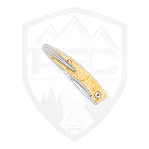 With hand-polished finishes and a handle at 3.625" long, the Mnandi is among our smallest and sleekest low-profile folders. Box Elder Burl, a type of Maple, is a wood known for its exquisite and sometimes rosy burls. Wood Inlays are made from natural materials, so you can expect a variation in color and wood grain.