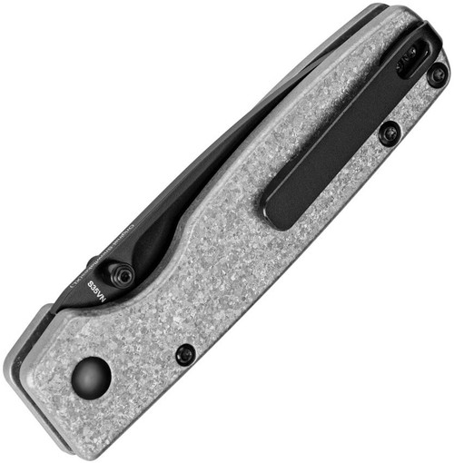Stonewashed S35VN blade material and drop point blade style provide excellent wear and corrosion resistance for durability.