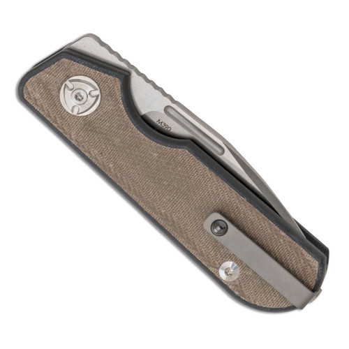 Liong Mah Design Traveller - Natural Micarta/Orange G10 Clip Point M390
