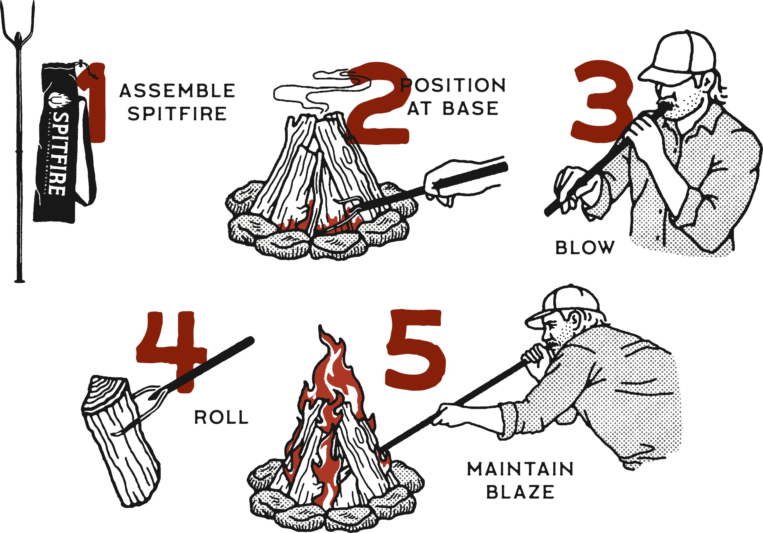The SPITFIRE X is a lightweight, durable, and packable all-in-one fire tool, combining the functionality of a fire poker with the air-blowing power of a traditional bellows. Crafted from high-carbon, powder-coated steel, it features a hollow tube for concentrated oxygen blasts to intensify flames instantly, while its two-prong design allows for rolling logs, raking coals, and managing fire structures. Easy to disassemble and store in its canvas bag, the SPITFIRE X is perfect for camping or backyard use. Handcrafted in Ripley, Ohio, by expert welders, this American-made tool is built to last with laser-cut tines, precision molding, and optimal airflow design for maximum efficiency. With a sleek, portable design and unmatched functionality, the SPITFIRE X ensures effortless fire control for any occasion.