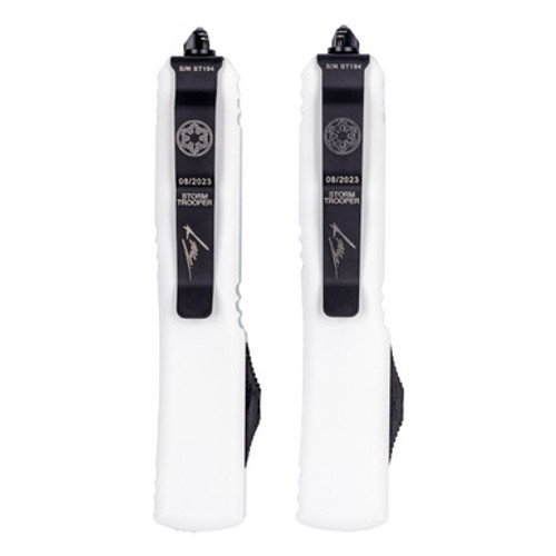 As the flagship model of the Microtech® O.T.F. lineup, the Ultratech® sets the standard for Out-The-Front technology. Proprietary design allows the firing spring to be at rest in both the open and closed positions, drastically reducing wear on the internal firing mechanisms. The contoured chassis handle provides a lighter and more ergonomic feel and comes in a smooth, flat finish.