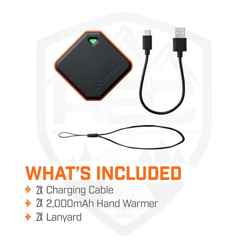 The THAW 2K delivers easy-to-carry warmth when cold, stiff fingers make simple tasks unbearable. Double-sided heating activates with simple one-button control so you feel warmth on your full grip. Heats up to 113°F and lasts up to 4 hours with a 2,000mAh lithium-ion battery easily recharged via USB-C port. Easily fits in your pocket, so it's always with you during outdoor activities. Integrated LED light activates even while the heat is on to illuminate tasks without freezing your fingers. Built for outdoor enthusiasts who need reliable hand warming with convenient pocket carry and dual functionality that combines heat and light for complete cold weather preparedness. Comes with 1 hand warmer, 1 charging cable, and 1 lanyard.